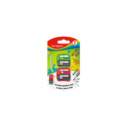 1 kép KeyRoad Hegyező, 2 lyukú, 2 db/bliszter, Dou-Power, vegyes színek (KEYROAD_54327)