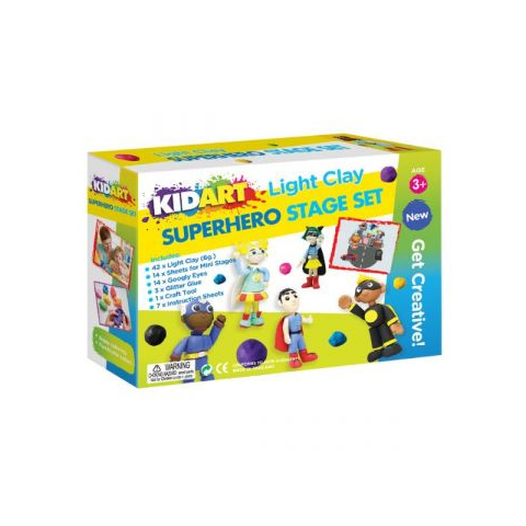 A kreativitásnak semmi sem szabhat határt! Ezzel a szuperhős készítő, modellező gyurmaszettel igazán egyedi alkotásokat készíthetnek a gyerekek. A doboz minden eszközt és kiegészítőt tartalmaz, amire szükségük lesz a figurák megalkotásához. Színes gyurmát, szemeket, csillámos ragasztót és formázókat. Doboz mérte: 21 x 30 x 7,5 cm Tartalom: 42 x 6 g modellező gyurma, 14 lap a figuráknak, 14 db szem, 3 db csillámos ragasztó, 1 db formázó készlet, 1 db használa