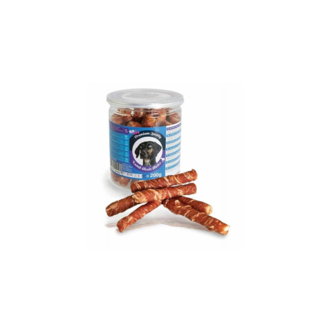 KidDog Lamb Steak Sticks - jutalomfalat (bárány) kutyák részére (200g)bárányhúsba csomagolt nyersbőrcsábító és ízletes jutalomprémium minőségtégelybe csomagolvaÖsszetétel: 40% bárány, 55% bivalybőr