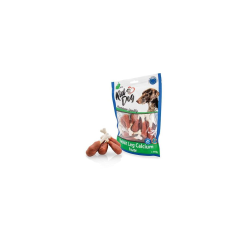 KidDog Rabbit Leg Calcium Bone - jutalomfalat (nyúl, kálciumos csont) kutyák részére (250g)kiegészítő eledel kutyáknakfinom csemegeÖsszetétel: 65% nyúlhús, 30% kalciumcsont, keményítő, növényi fehérje, glicerinsúlya: 250 g