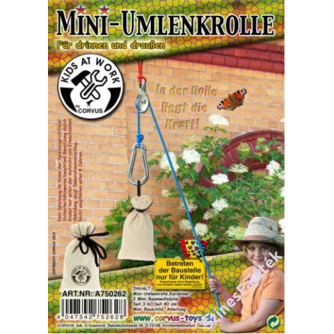 Kisméretű emelőcsiga, kötélzettel, zsákokkal. A mini csigás emelőhöz tartozó ki zsákokkal tudsz mindenféle terhet felemelni, mint a nagyok. A csomag tartalmaz 1 db mini csigát, 1 db kis karabinert, 2 db mini zsákot, 1 db 3 m-es és 1 db 0,4 m-es kötelet