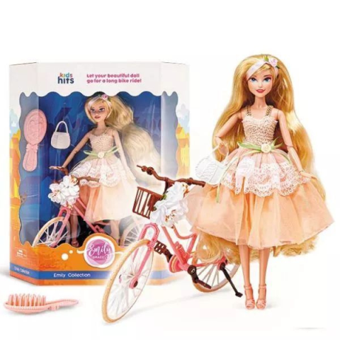Emily Grace egy csodaszép baba, aki elvarázsolja a gyerekeket, és ráadásul még biciklizni is szeret! A részletgazdag babához kiegészítők is érkeznek: egy fésű, hogy mindig tökéletes legyen a frizura, és egy táska, hiszen anélkül a lányok nem indulnak el otthonról.A termék jellemzői:- Szőke hajú, elegánsan öltöztetett baba- Rózsaszín bicikli, virágos kosárral- Részletgazdag dizájn, amely ösztönzi a szerepjátékot- Kiegészítők: hajkefe, kézitáskaA játék