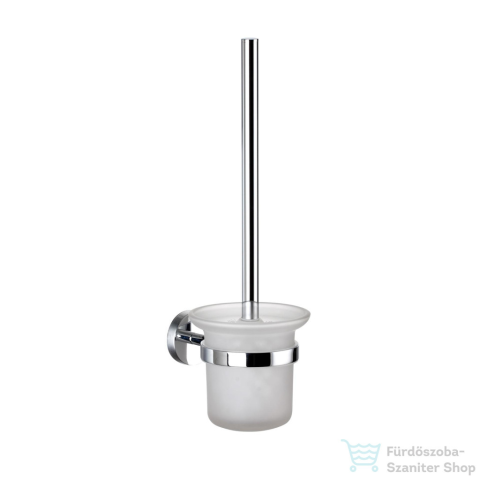WC-kefe és tartó sárgaréz kefe nyél króm bevonattal matt üveg kefetartó csavaros vagy ragasztós rögzítés (a ragasztó nem tartozék)
