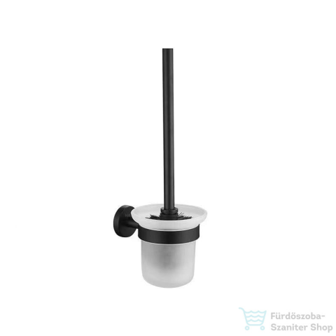 WC-kefe és tartó sárgaréz kefe nyél matt fekete bevonattal matt üveg kefetartó csavaros vagy ragasztós rögzítés (a ragasztó nem tartozék)