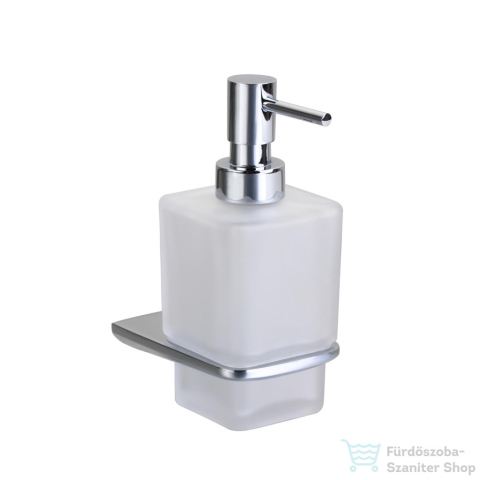 Folyékony szappanadagoló matt üveg tartály tartó és adagoló sárgarézből, króm bevonattal tartalom 220 ml csavaros rögzítés