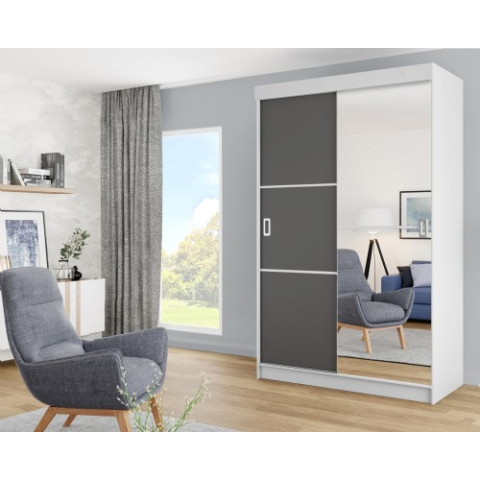 Kier Bill 2 138 Tolóajtós Szekrény 138cm, Fehér-Grafit bútor termékleírás