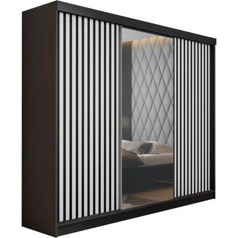 Kier Malani 200 Tolóajtós Szekrény 200cm, Fekete-Fehér bútor termékleírás