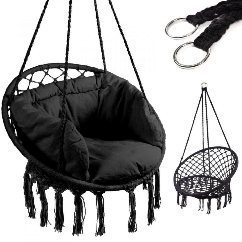 1 kép KIK Swing rojtos függőfotel párnákkal, 80cm, 150kg teherbírás, Fekete