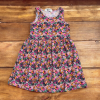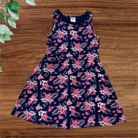 S.kék, virágos ruha Kissé bővülő szabású, kerek nyakkivágású. Mutatós virágos anyag, kellemes viselet. Hibátlan állapotú.