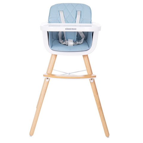 Etetőszék - Csúszásgátlós falábakkal készült trendi, mégis praktikus etetőszék. - Maximum 36kg-ig használható. - 5 pontos biztonsági övvel, műanyag tálcával, fa lábtartóval. - Ökobőr üléshuzattal. - A tálca 3 pozícióba állítható. - Átalakítható ki