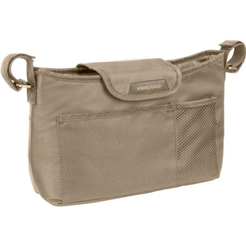 Rendszerező - elülső zsebekkel, hátsó cipzáras zsebbel, belső kis zseb és nagy belső rekesszel, két rugalmas kulacstartóval, tépőzáras rögzítővel akasztható a babakocsira, hosszú, állítható vállpárnázással ellátott pánt, összetétel: 100% poliészter, méretek: 34×21×12 cm