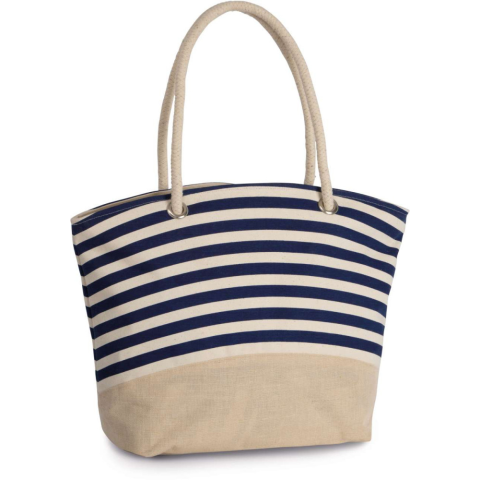 1 kép KIMOOD tengerész csíkos juta és pamut bevásárlótáska KI0283, Natural/Navy