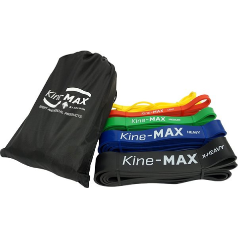 Gumiszalag szett - húzódzkodáshoz, ellenállás 1 - 55 kg, anyaga gumi, fekete, piros, kék, zöld és sárga kivitel Ha még soha nem próbáltál edzőgumival edzni, akkor itt az ideje, hogy ezen változtass! A Kine-Max Professional Super Loop Resistance Band Kit egy kényelmes csomag 5 darab fitnesz szalaggal, am