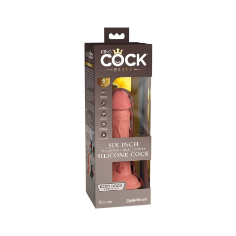 1 kép King Cock Elite 6 - tapadótalpas, élethű vibrátor 15cm (sötét natúr)
