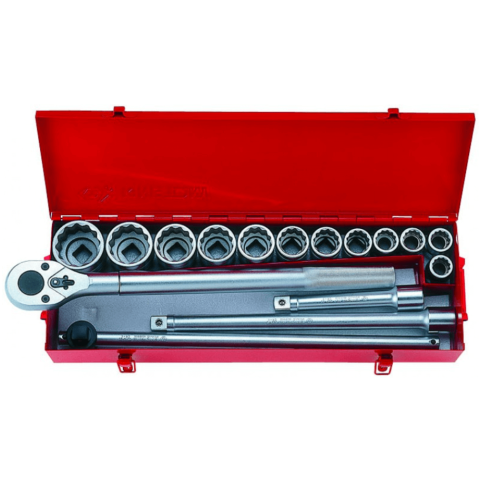 Minőségi King Tony márkájú 16 részes kézi 3/4˝ dugókulcs készlet.12* 6016MR 6016MR King Tony dugókulcs készlet tartalma 6330M 12* dugófejekből: 21, 22, 23, 24, 27, 30, 32, 36, 38, 41, 46, 50mm; 6251-08, 6251-16 toldó, hosszabbító 6572-20 hajtókar