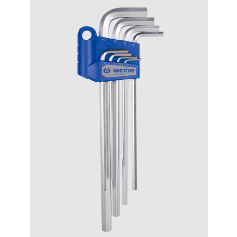 Minőségi King Tony márkájú 8 részes hosszú imbusz készlet 2-10mm 20208MR King Tony hosszú imbuszkulcs készlet jellemzői 8db-os hatszögkulcs készlet Méretek 1125M: 2, 2.5, 3, 4, 5, 6, 8, 10 mm hosszú kivitel Anyaga: SNCM + V ötvözött acélból Felü