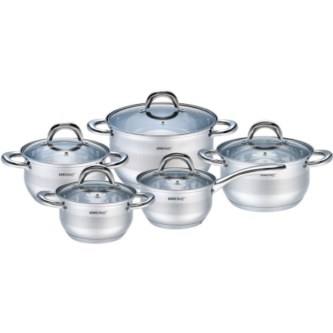 1 kép Kinghoff 10 Darabos Edénykészlet - Rozsdamentes Acél, Edzett Üveg Fedő KH-1096 (KH-1096)