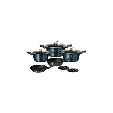 10 darabos főzőedénykészlet Részletek: Anyag: Kovácsolt alumínium Szín: Akvamarin A készlet tartalma: Serpenyő 20 x 4,5 cm 1,0 l Mély serpenyő 24 x 6,5 cm 2,3 l Fedős lábas 20 x 10,4 cm 2,5 l Fedős lábas 24 x 12 cm 4,1 l Fedős lábas 28 x 12,5 cm 6,1