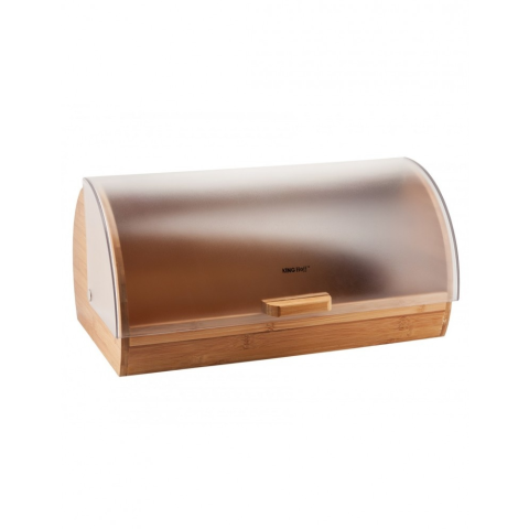 Kinghoff kenyértartó felhajtható nyílással, természetes bambusz és áttetsző akril összeállításban. Bambuszfa talp. Modern anyag és színválasztás a klasszikus kenyértartó forma megtartásával. Praktikus és dekoratív kiegészítője minden konyhának, tartós, ma