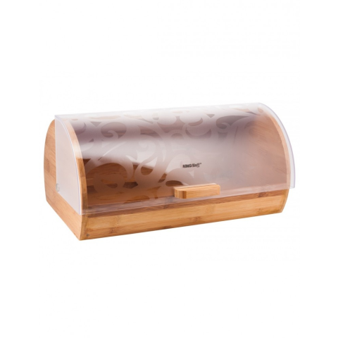 Kinghoff kenyértartó felhajtható nyílással, természetes bambusz és áttetsző akril összeállításban. Bambuszfa talp. Modern anyag és színválasztás a klasszikus kenyértartó forma megtartásával. Praktikus és dekoratív kiegészítője minden konyhának, tartós, ma