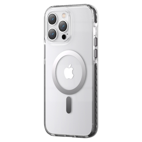 Kingxbar Ice Crystal Series iPhone 14 MagSafe tok szürke színben Átlátszó tok finom színkiemeléssel, amely kiemeli az okostelefon gyári megjelenését, de nem árnyékolja be azt. A széleken és a MagSafe dobozon visszafogott mintákat találsz. A további do
