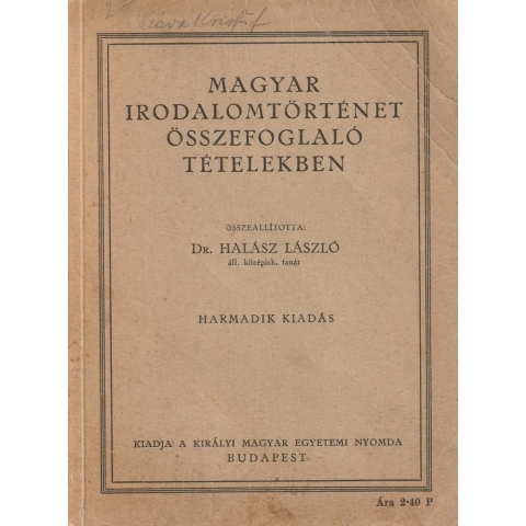 1 kép KIRÁLYI MAGYAR EGYETEMI NYOMDA Magyar irodalomtörténet összefoglaló tételekben