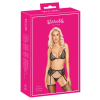 A szett tartalma:Puha áttetsző melltartó - merevítés, bélés nélkül, állítható pántokkal, hátul műanyag kampóval, elöl kis masnis dísszelÁttetsző harisnyatartó - 4 állítható harisnyatartó pánttal, hátul hátul műanyag kampóval