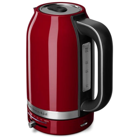 Vízforraló - rozsdamentes, űrtartalma 1,7 l, piros kivitel, szűrő, LED világítás és forgótalp Egy ilyen 1,7 lűrtartalommal rendelkező KitchenAid Vízforraló lehetővé teszi, hogy gyorsan elkészítsd kedvenc forró italod. A vízforraló rozsdamentes acélból készült, nem tartalmaz olyan anyagokat, am