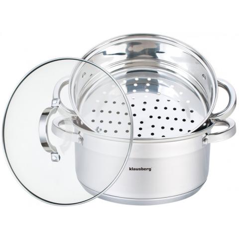 Klausberg pároló edénykészlet magas minőségű rozsdamentes acélból. Három részes szett ami tartalmazza a lábost, a pároló betétet és edzett üveg fedőt, gőzáteresztő nyílással ellátva. A lábos vízzel történő felöntését követően a zöldségeket a pároló részbe