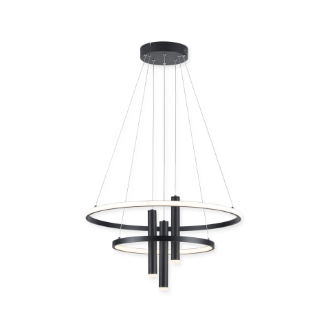 Az ALTHEIA függesztett lámpa elegáns és modern formavilágával a belső terek látványos központi elemévé válik. A kör alakú LED gyűrűk és a lefelé irányuló hengeres fényforrások harmonikus összhangja különleges fényhatást teremt. Fekete és fehér színben is ..