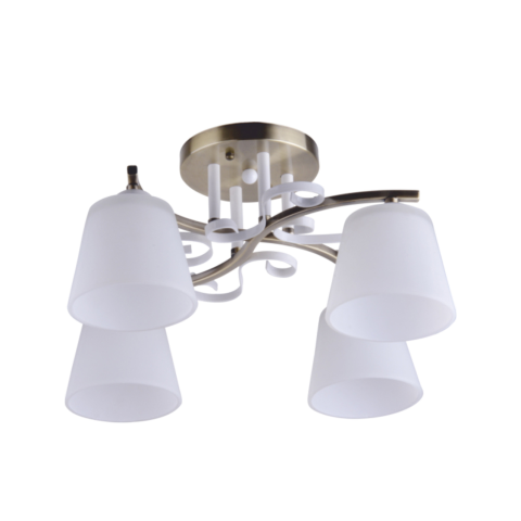 Az ANITA mennyezeti lámpa elegáns fehér-antik bronz színkombinációjával kifinomult hangulatot teremt bármely helyiségben. Négy fehér üveg búrája kellemesen szórja a fényt, míg az ívelt, dekoratív fém karok egyedi karaktert kölcsönöznek a lámpának. Klasszi..