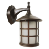 Könnyű alumínium test, barna színű és fehér matt üveg felülettel lefelé. Méretei 240 x 160 mm, mélység (fal távolság) 220 mm, IP44 védelmmel van ellátva, kültéri használatra ajánljuk, ideális teraszra, kertre vagy erkélyre. E27 foglalattal rendelkezik
