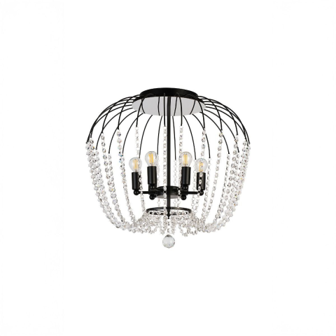 A CHIC mennyezeti lámpa elegáns és dekoratív megjelenésével igazi éke lehet bármely belső térnek. Fekete fémből készült váza és a köré omló üvegkristály láncok különleges fényjátékot hoznak létre, amikor a lámpa felkapcsolódik. Az E14-es foglalatokba tets..