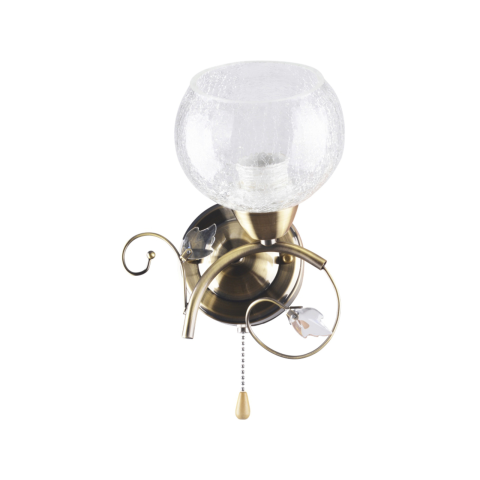 A CRUSH fali lámpa a mennyezeti verzió stílusos kiegészítője, amely bronz színű fémvázzal és repesztett üveg hatású búrával készül. Az íves fémkar és a finom levélmotívum elegáns, díszes megjelenést kölcsönöz, miközben kellemes, szórt fényt biztosít. Az E..