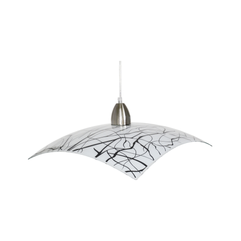 Az Elysia függesztett lámpa a modern formavilág és a letisztult design kedvelőinek készült. Fehér üveg búráját fekete, lendületes vonalrajzok díszítik, amelyek egyedi és különleges megjelenést kölcsönöznek. E27 foglalattal rendelkezik, az izzó nem tartozé..