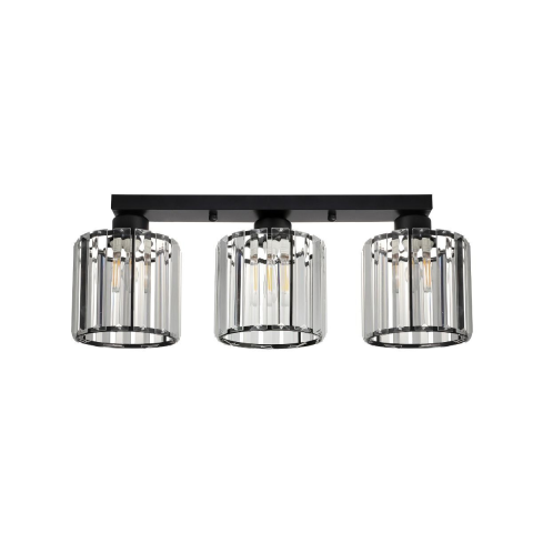 Az ESRA mennyezeti lámpa elegáns, modern formavilágával stílusos kiegészítője lehet bármely enteriőrnek. Fekete fém váza erőt és karaktert sugároz, míg az átlátszó, kristályhatású üveg burák finoman szórják a fényt, különleges fényjátékot teremtve a helyi..