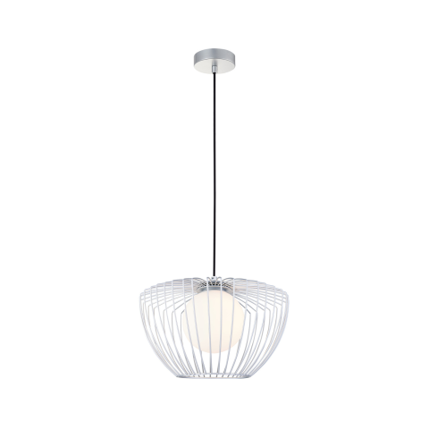 A FORMAL függesztett lámpa elegáns és modern kiegészítő, amely finom, mégis látványos megjelenést kölcsönöz bármely helyiségnek. Az ezüst színű, geometrikus fémrács könnyed szerkezete légies hatást kelt, miközben az opálos üvegbúra lágyan szórja a fényt. ..