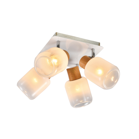 A GENTLE mennyezeti lámpa modern és letisztult megjelenést kínál, amelyet a fehér üveg búrák és a natúr fa elemek harmonikus párosítása tesz különlegessé. A természetes és elegáns stílus egyszerre barátságos és letisztult, így tökéletes választás nappalik..