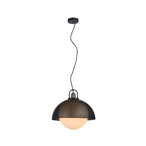 A GRAVEN függesztett lámpa modern, mégis karakteres kialakításával igazi stíluselem minden enteriőrben. Félgömb alakú, perforált fém búrája izgalmas fény-árnyék játékot hoz létre, míg az üvegbúra lágyan szórja a fényt, kellemes hangulatot teremtve. E27 fo..