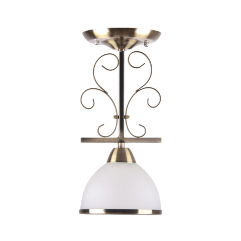 Az IRON mennyezeti lámpa az antik bronz és fehér színek klasszikus párosításával elegáns és időtálló választás otthona bármely helyiségébe. A finoman ívelt fém díszítések és a fényáteresztő üvegbúrák harmonikus összhangban alkotnak stílusos és praktikus v..