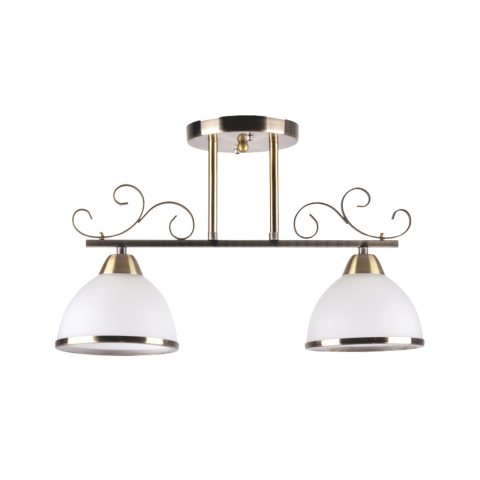 Az IRON mennyezeti lámpa az antik bronz és fehér színek klasszikus párosításával elegáns és időtálló választás otthona bármely helyiségébe. A finoman ívelt fém díszítések és a fényáteresztő üvegbúrák harmonikus összhangban alkotnak stílusos és praktikus v..
