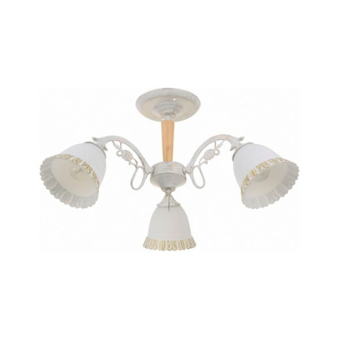 MERIDA mennyezeti lámpa klasszikus és romantikus stílusban készült, amely fehér-arany színeivel és natúr fa részleteivel elegáns, mégis otthonos hangulatot áraszt. A lámpabúrák különleges fodros pereme egyedi megjelenést kölcsönöz, így a lámpa igazi dísze..