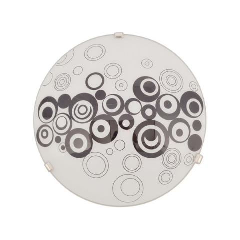 A RAISSA mennyezeti lámpa modern, játékos hangulatot visz a helyiségbe. A fehér alapot díszítő fekete és szürke körmotívumok lendületet adnak a lámpatestnek, amely így könnyedén feldobja a nappalit, hálót vagy akár az előszobát is. E27-es foglalattal rend..
