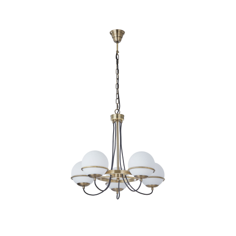 A SERINITY csillár elegáns és időtálló megjelenésével a klasszikus enteriőrök egyik legszebb dísze lehet. Az antik bronz színű fém lámpatest és a lágy vonalvezetés harmonikus egységet alkot, amelyet az öt darab gömb alakú, opálüveg búra tesz teljessé. Az ..