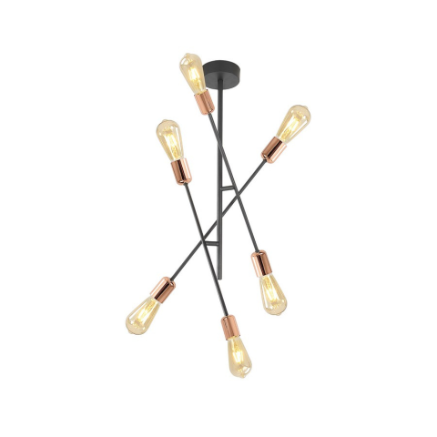 1 kép KLAUSEN Straight 6 fekete-réz mennyezeti lámpa (KL106005) E27 6 izzós IP20