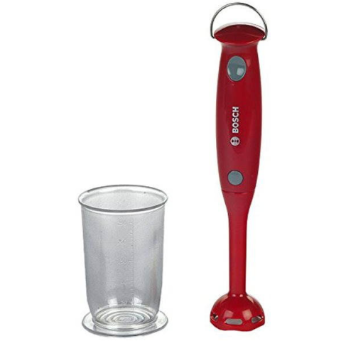 Játék háztartási gép - turmix feltét és edény, hangeffektek, 2 AA elem (nincs mellékelve), anyaga műanyag, 2 darabos készlet, mérete 27,5 × 8 × 8 cm (Ma×Sz×H), vörös kivitel, ajánlott 3 éves kortól A Bosch Klein játék turmixgép tökéletes utánza egy kézi mixernek és valósághű funkciókat kínál. Célja, hogy valamennyi fiatal "háziasszony" aki már elkezdett sürögni-forogni a konyhában elké