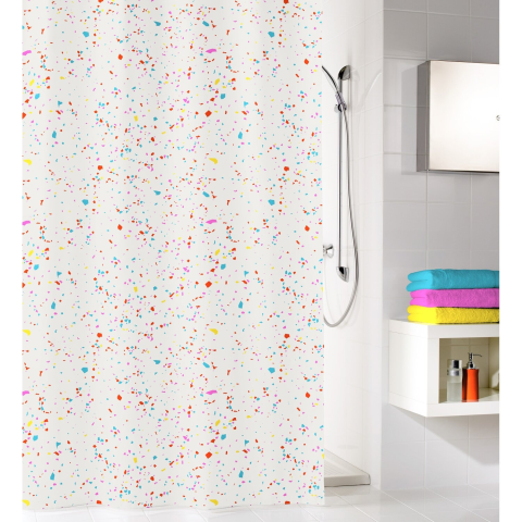 Zuhanyfüggöny számos előnnyel: a kiváló minőségű Kleine Wolke Confetti zuhanyfüggönnyel szebbé teheti fürdőszobáját, egyedi kiemeléseket alkalmazhat és kiváló belátás- és fröccsenés elleni védelmet hozhat létre a zuhanyzó vagy a fürdőkád területén. A szabálytalanul összekevert tarkabarka konfetti jókedvet teremt. A zuhanyfüggöny teljesen vízálló és megerősített lyuksorral rendelkezik. A termék tartósságát és vízállóságát folyamatosan ellenőr