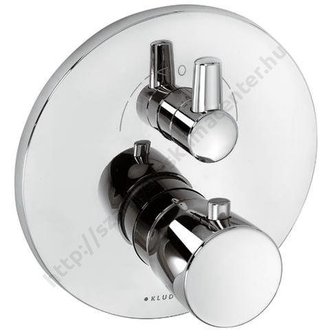 Csz: 528300575 KLUDI BALANCE falsík alatti termosztátos kád/zuhanycsap falon kívüli készlet szabályzóegységgel, előlappal kerámia zárószeleppel és váltószeleppel 38 ˚C−ra beállított retesszel P-IX 18444/IICC