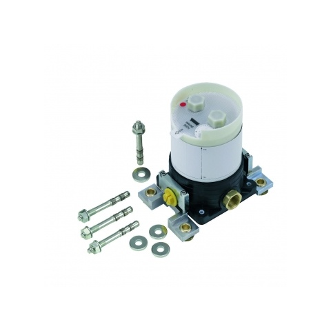 KLUDI FLEXX.BOXX falsík alatti csaptest álló kádtöltőhöz falon kívüli részek nélkül vezérlő egység nélkül falsík alatti beépítés egyrészes elasztomer köpeny védőlappal (készreszereléskor eltávolítandó) kiegészítő tömítő gallérral öblítés csatlakozással ci