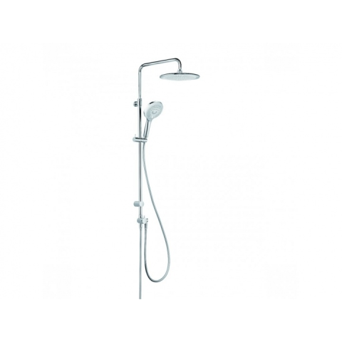 Kludi Freshline Dual Shower System zuhanycsaptelep nélkül 6709005-00 nagy fejzuhannyal, 3 kézi zuhanyfejjel és Kludi Supraflex Silver gégecsővel.